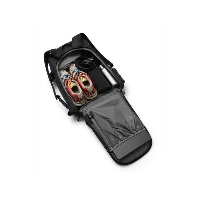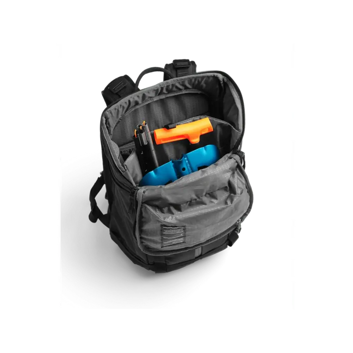 The off-piste pack for life on and off the mountain. Developed with a recycled high-tenacityc black Nylon yarn, this lightweight fabric is constructed with a mega ripstop blending outdoor heritage and modernity for superior durability for its weight class.