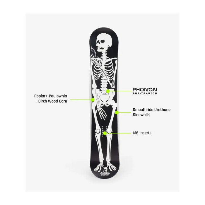 This collaboration combines the O.G. Bomber Skeleton graphic from 1988 along with the highly innovative Crystal Ocean wide shape and design from 1993 - updated with Endeavor's exclusive Phonon Topsheet and Smoothride Sidewall technology.