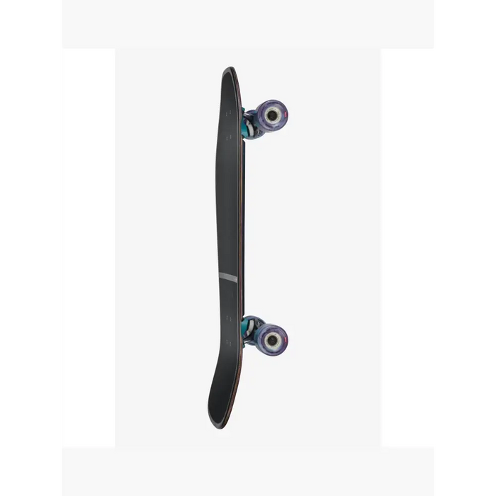 Flashback, forme fortement effilée pour déchirer les piscines et naviguer. Le Phantom in Black/No Time présente une construction de pont en érable hard rock Resin-7 et une vieille école, un concave presque plat d'un côté à l'autre avec une queue et un nez plus doux. Comprend également des trucks en alliage Tensor de 6,5 pouces et des roues Soft Sider de 65 mm 78a. Ce deck trempé est fini avec du ruban adhésif noir fendu et des rails coulissants en plastique.