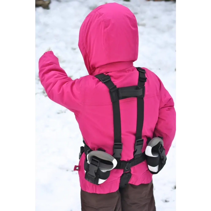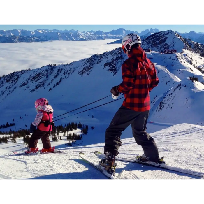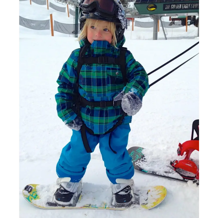 Lil' Ripper Gripper is the first retractable ski & snowboard training harness.  No more fighting slack, or turning your child into a human Yo-yo on the way down the hill.  The locking leash holsters and rear safety handle also make this a far safer harness around the lifts.