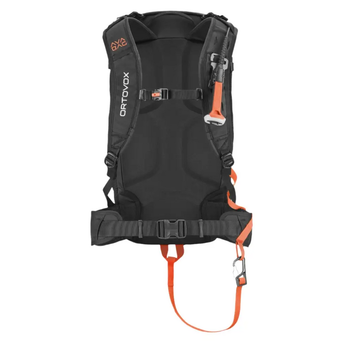 The BASE comprises a back element and airbag system and sits comfortably thanks to the FULL CONTACT LIGHT back system. The stowaway bag can be completely opened up thanks to its circumferential zipper and is equipped with all of the features you need on a tour: Ski, splitboard, and rope attachments, an ice axe holder and small map compartment leave nothing to be desired. Emergency equipment can be stowed in a separate safety compartment. We have used particularly lightweight but scuff-resistant materials to keep weight down to a minimum.