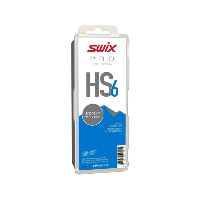 HS6 est très polyvalent. Son domaine d'utilisation s'étend de la sous-couche pour la poudreuse au fart de course et au fart de préparation de base pour les skis froids. HS6 a une bonne durabilité et offre d'excellentes performances sur neige naturelle et artificielle. Lors du repassage, prenez env. 8-10 secondes. pour couvrir votre base. La cire peut être réchauffée après refroidissement à température ambiante (10 min) pour une meilleure durabilité. Il est important d'avoir un bon fer à repasser pour obtenir une fonte efficace de la cire.