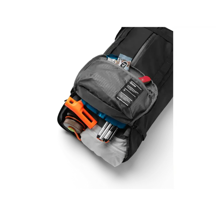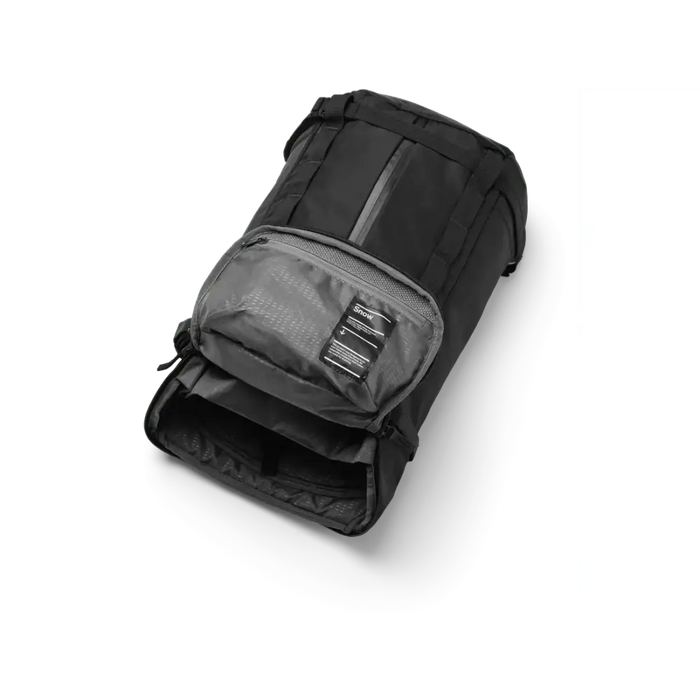 The resort-friendly, off-piste snow backpack that can double as an everyday essential. Developed with a recycled high-tenacity black Nylon yarn, this lightweight fabric is constructed with a mega ripstop blending outdoor heritage and modernity for superior durability for its weight class.