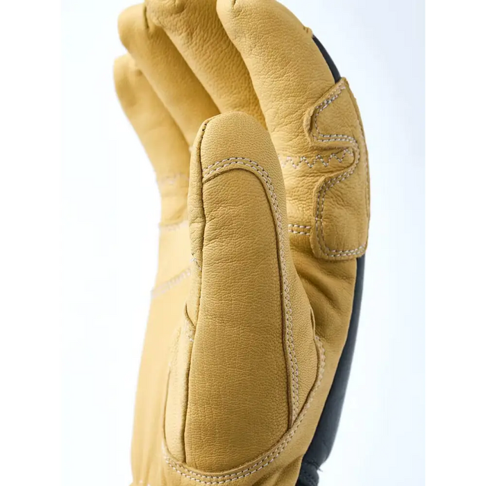 Short, supple 5-finger freeriding glove for alpine skiers and snowboarders who prioritise grip and feel over lots of insulation. Sewn in hardwearing treated leather – goatskin on the palm and cowhide on the backhand – with a lightweight brushed polyester lining. This glove features Ergo Grip construction where the seams are positioned to optimise freedom of movement of the fingers with minimum surplus fabric in the palm. All in all, this makes for a comfortable glove with fantastic grip and fingertip sensitivity – perfect for piste, park and off-piste in the milder months of the ski season.
