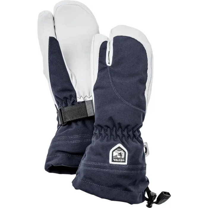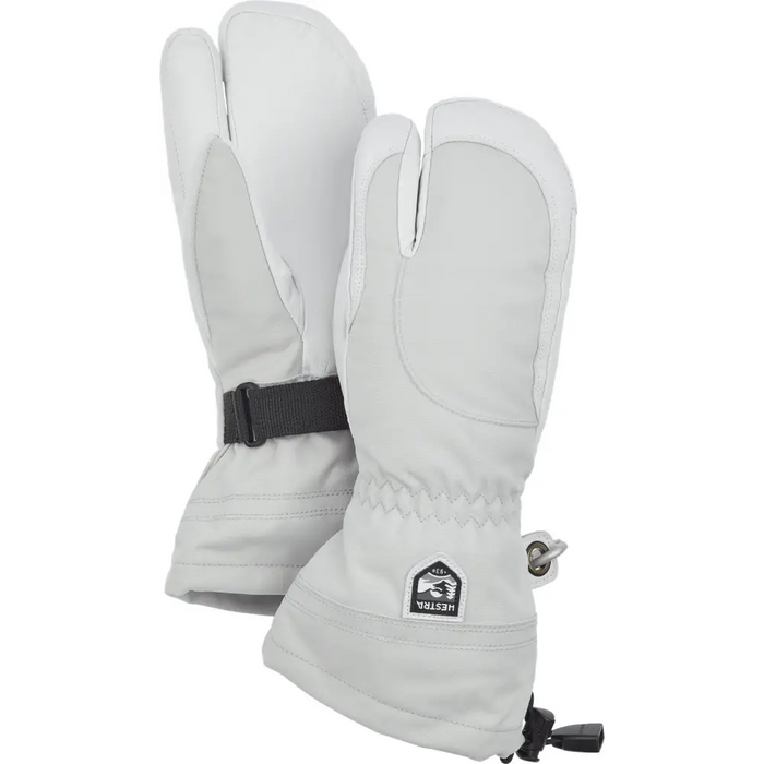 Hestra's Army Leather Heli Ski was originally created for ski guides in western Canada who needed a reliable and warm ski glove for long, cold days in the snow. This 3-finger women's glove has a narrower cut to fit women's narrower hands but is sewn in the same hardwearing, weather-resistant combination of goatskin leather and 3-layer polyamide fabric as the men's version. Like all 3-finger versions, it offers somewhat more warmth while retaining a certain amount of finger dexterity. A range of smart functions come in handy when you can't head indoors to warm up that often. For example, the liner is easy to remove and dry, or replace with a thinner inner glove when you're being more active and hiking uphill. In powder snow, the long cuff with snowlock and wrist adjustment keep the snow on the outside and the warmth on the inside. A wrist strap reduces the risk of dropping a glove if you take it off to adjust your equipment or use your phone. And the included carabiner means you can hang the glove up with its opening facing downwards – practical to avoid your gloves filling up with snow while you're wearing just a thinner liner. A durable, flexible companion for skiers that spend a lot of time outdoors and who often find themselves far from the ski resort and its comforts. Also available as a mitten and 5-finger model, and in a men's version.